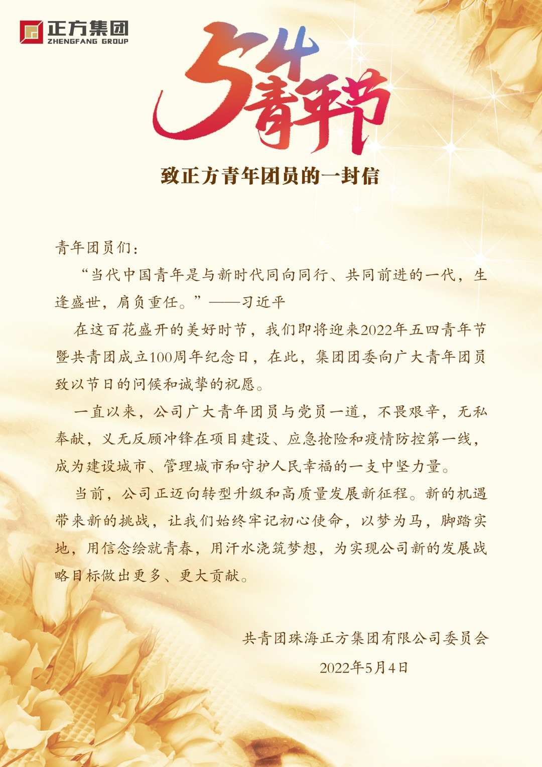 為迎接“五四青年節(jié)”和中國(guó)共青團(tuán)成立100周年的到來(lái),正方集團(tuán)團(tuán)委組織了一批優(yōu)秀青年團(tuán)員拍攝五四青年節(jié)宣傳片,在節(jié)前為廣大青年團(tuán)員送去節(jié)日的祝福,并發(fā)放了“致正方青年團(tuán)員的一封信”和共青團(tuán)團(tuán)徽,感謝青年團(tuán)員們?yōu)楣景l(fā)展做出的貢獻(xiàn),讓青年團(tuán)員們感受到團(tuán)組織的溫暖。
