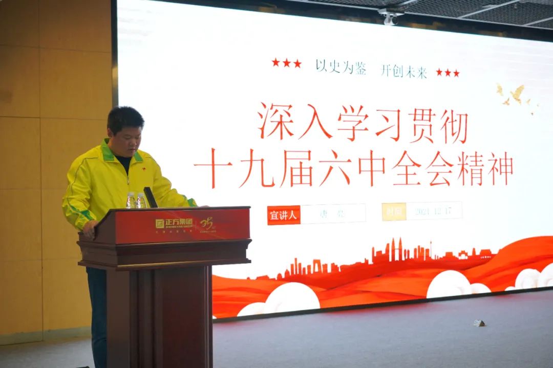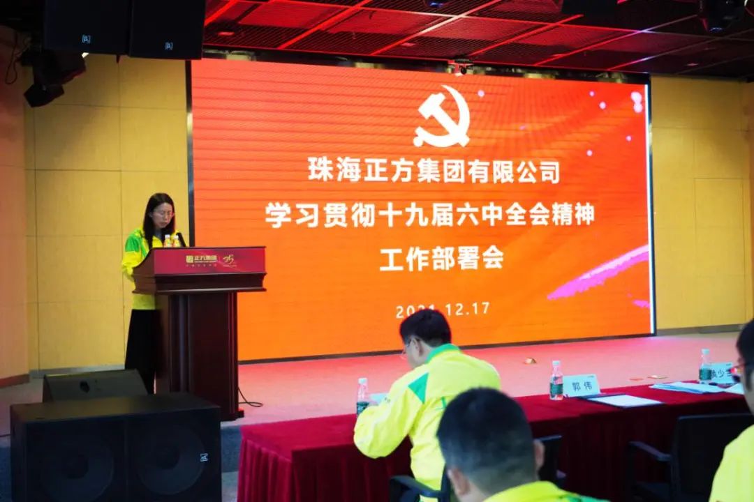 為深入學(xué)習(xí)貫徹黨的十九屆六中全會精神,12月17日下午,正方集團(tuán)黨委組織召開黨員大會。正方集團(tuán)黨委書記唐亮同志以“書記講黨課”的形式對十九屆六中全會精神進(jìn)行深入解讀。黨委委員黃少蘭同志宣讀了《珠海正方集團(tuán)黨委關(guān)于學(xué)習(xí)貫徹黨的十九屆六中全會精神的實(shí)施方案》。正方集團(tuán)及各平臺、板塊150余名黨員參加會議。
