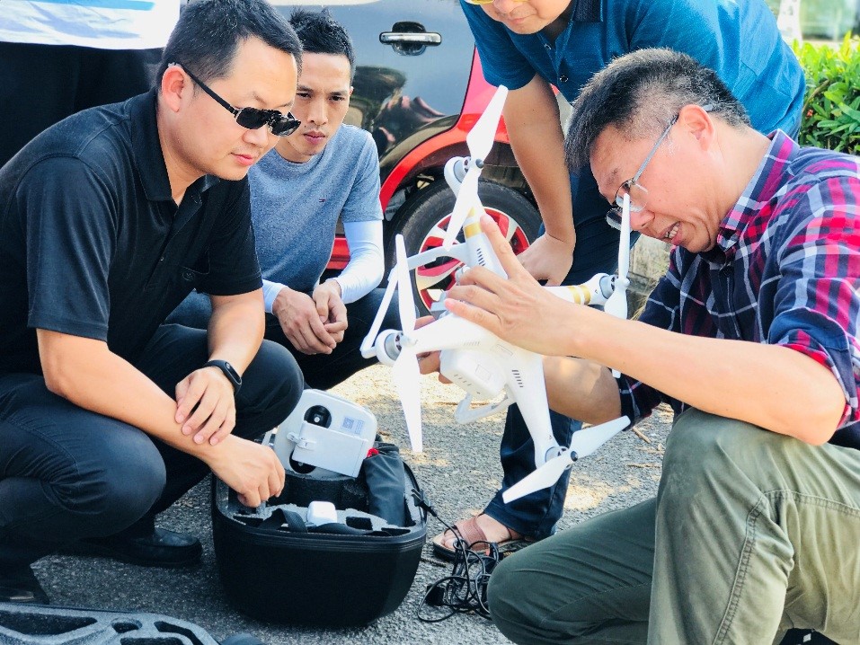 △邀請(qǐng)資深編導(dǎo)、攝影師朱瑞盛老師講解無人機(jī)的結(jié)構(gòu)、如何操作及航拍的攝影技巧,并現(xiàn)場(chǎng)指導(dǎo)全體人員使用操作無人機(jī)