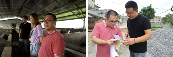 △扶貧小組在養(yǎng)豬場進(jìn)行實地考察
