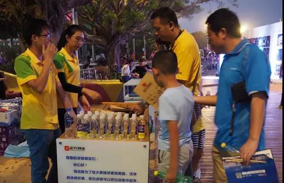 △多位市民游客主動(dòng)加入“垃圾換水”的活動(dòng)中