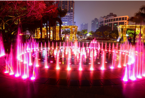 城市客廳音樂(lè)噴泉,根據(jù)時(shí)間進(jìn)行燈光設(shè)置