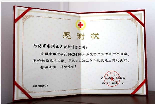 珠海市香洲正方控股有限公司總經(jīng)理助理黃少蘭代表公司出席會議。會議特設省領導致謝捐贈人環(huán)節(jié),香洲正方因貢獻突出,榮獲多項榮譽。
