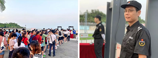在城市客廳擔(dān)任保安的香洲正方員工吳永生表示,這是他連續(xù)第三年在中秋節(jié)執(zhí)行安保任務(wù)。今年的入場安檢較往年順暢了許多,市民們積極配合,主動交出打火機(jī)等易燃物品,按序排隊(duì)入場,沒有出現(xiàn)擁堵的情況。