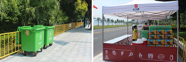 10時(shí),情侶南路所有的手繪垃圾桶已全部被拆除移走,取而代之的是臨時(shí)增設(shè)的600L大型垃圾桶。烈日下,劉德龍和同事們奔走在7個(gè)便民售水服務(wù)店之間,搭建帳篷、配送銷售物料。