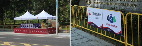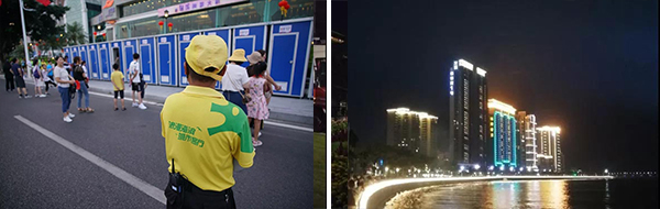 活動當天,“小黃人”們對將軍山公園五個入口進行封閉,做好火種管理、值班值守以及山地、林地的巡查安全管理工作;將情侶南路所有的手繪垃圾桶全部拆除移走,設置30個600L的大型垃圾桶,調(diào)配2臺車輛式移動洗手間及100個立式移動洗手間停放到指定位置,3個驛站配套洗手間正常開放。當?shù)弥^賞C區(qū)臨時調(diào)整為兩個區(qū)域(C1和C2)后,公司積極應對,通過兩次調(diào)整,將放置在D區(qū)的2臺車輛式移動洗手間順利調(diào)配補位到C2區(qū)域,及時解決問題。此外,香洲正方還設置了7個便民售水服務點并配備應急藥箱。
