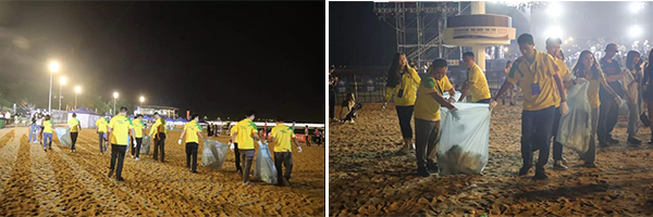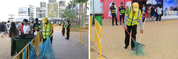 兩天的沙灘音樂節(jié),香洲正方共派出660人次到現(xiàn)場提供救生安全、保潔、零售、地毯式清潔等多項(xiàng)保障服務(wù)。