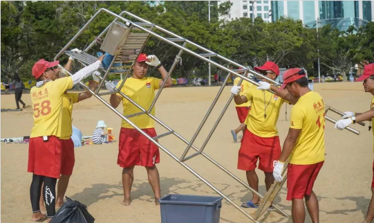 10月26日上午9時(shí),珠海市香洲正方控股有限公司(以下簡(jiǎn)稱“香洲正方”)救生隊(duì)收起濱海泳區(qū)的浮球、瞭望臺(tái)等設(shè)施,在沙灘上設(shè)立多處“禁止下?!钡木緲?biāo)識(shí),循環(huán)播放閉海廣播。標(biāo)志著濱海泳區(qū)正式關(guān)閉。