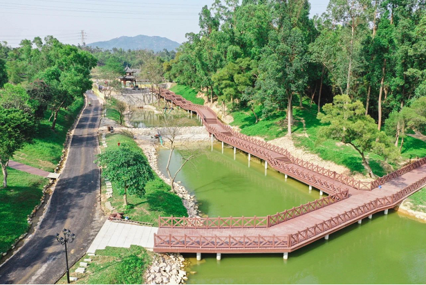 為實(shí)現(xiàn)這一設(shè)計(jì)思路,在市、區(qū)領(lǐng)導(dǎo)的關(guān)心指導(dǎo)下,香洲正方反復(fù)現(xiàn)場(chǎng)實(shí)地踏勘,通過(guò)最大限度地保留原有的山、水、草木等生態(tài)特征,不斷發(fā)掘原地貌特征中的景觀優(yōu)勢(shì),結(jié)合傳統(tǒng)嶺南建筑風(fēng)格,對(duì)亭、臺(tái)、樓、榭、橋、廊、假山等景觀節(jié)點(diǎn)細(xì)心雕琢,令傳統(tǒng)建筑元素與現(xiàn)代舒適性需求充分結(jié)合,最終確定了總體規(guī)劃方案。