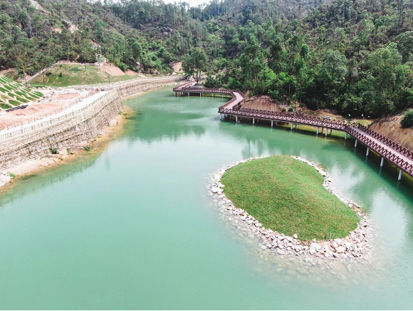 香山湖公園二期最大的特色是順勢(shì)而下的水景。山不在高,有水則靈,建設(shè)方對(duì)原有的水塘進(jìn)行適當(dāng)改造,形成4級(jí)湖面,青山綠水相互輝映,游客可沿湖邊一路游覽,欣賞獨(dú)特美景。