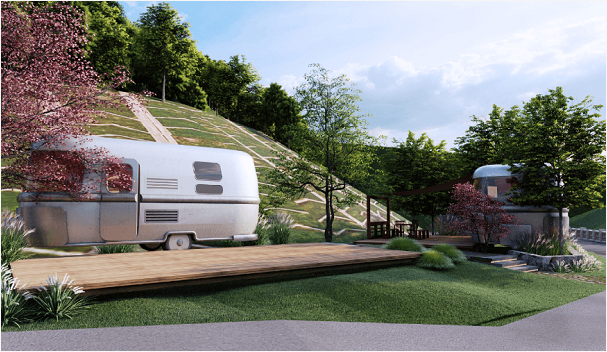 房車露營文化展示體驗(yàn)區(qū),位于驛站東北側(cè),包含2臺(tái)8米房車及1個(gè)配套集裝箱。有獨(dú)立院落,可以布設(shè)營地生日party、周年慶活動(dòng)等等,體驗(yàn)極具魅力的營地文化。