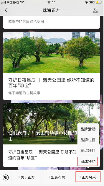 珠海這里可以預(yù)約打網(wǎng)球了!就在香洲網(wǎng)球社區(qū)公園(原中珠、中廣社區(qū)公園)?,F(xiàn)在,為了方便市民們預(yù)約場地,點進“珠海正方”頁面右下角“正方風(fēng)采”的“網(wǎng)球預(yù)約”或者長按掃一掃即可線上預(yù)約,即可進入網(wǎng)球預(yù)約小程序!