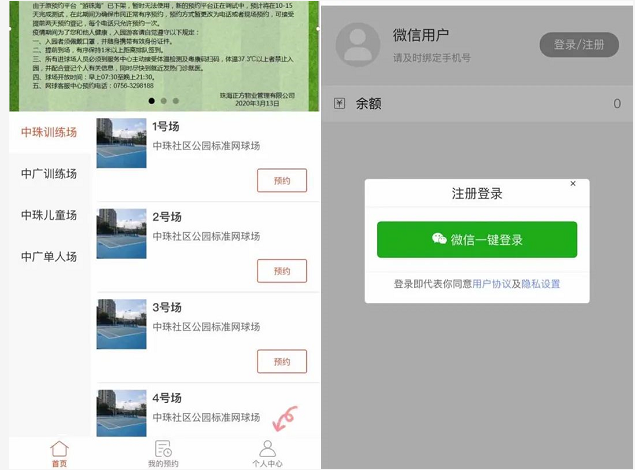 掃碼之后進入小程序主頁,點擊右下角的【個人中心】,進行用戶注冊;之前在h5版本系統(tǒng)中已經(jīng)注冊過的用戶,需要同步預(yù)約記錄/資產(chǎn),預(yù)約系統(tǒng)以手機號為用戶識別;之前注冊賬號與微信綁定手機號一致的,點擊【微信一鍵登錄】,按照指引授權(quán)即可完成登錄;如不一致,需點擊【手機號登錄】,輸入之前注冊時使用的手機號,進行登錄;未注冊過的新用戶,使用【微信一鍵登錄】即可。