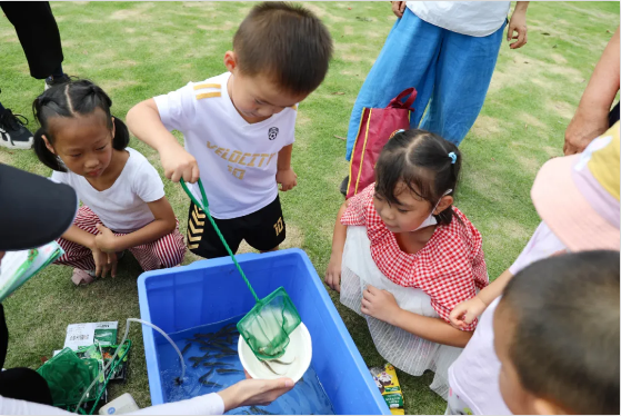 第三關(guān)打卡任務(wù):小朋友們須“打撈”小魚苗,將它們安全護送到湖邊,交給工作人員投放到香山湖。