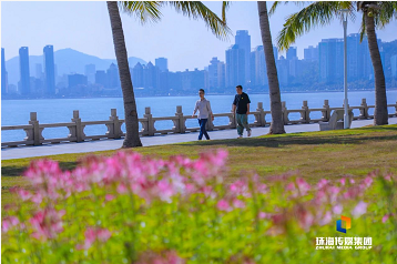 海灣園對出的花帶總面積約1600平方米海風輕拂,花枝搖擺,春光也因此顯得格外美好。