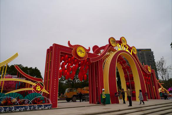 香山湖公園紅紅的“牛年賀歲”主題景觀,中國(guó)紅主色調(diào)和傳統(tǒng)中國(guó)生肖元素相結(jié)合,營(yíng)造出濃濃節(jié)日氛圍,亭、廊、榭,樹(shù)叢中、路燈下,處處是一片紅紅的燈籠和中國(guó)結(jié),向日葵、波斯菊、油菜花、冰島虞美人描繪出一幅五顏六色的水彩畫(huà)。
