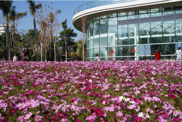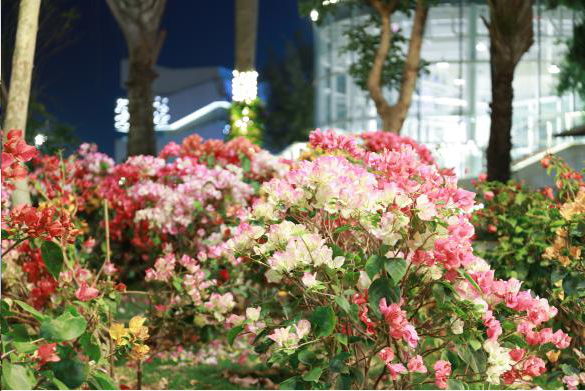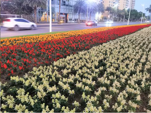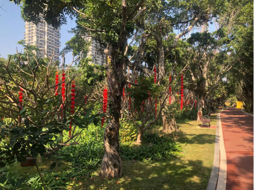 在梅華城市花園、前山濱河公園、城市客廳等,香洲正方管養(yǎng)的140多個(gè)公園處處可見(jiàn)紅紅燈籠、璀璨的流星燈、嬌艷的時(shí)花,紅色成為新春佳節(jié)的主題。