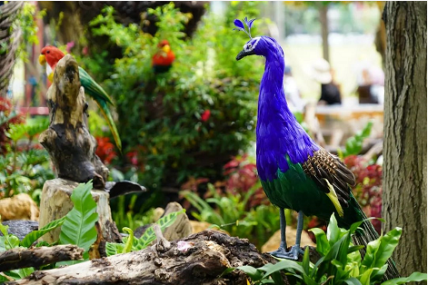 作品描述:此作品以藤蔓月亮為主景,結(jié)合多種蘭花、火山石、吸水石以及高壓霧化系統(tǒng)等配搭,營造出仙霧繚繞、云中之月的精致景觀。同時結(jié)合了七彩燈光、流星燈等五彩斑斕的燈光,更加凸顯其特色,煙霧與燈光的結(jié)合,蘭花與月亮的造型,孔雀與鸚鵡的豐富元素,一切互相聯(lián)動,仿佛進入人間仙境,此乃云中蘭月。