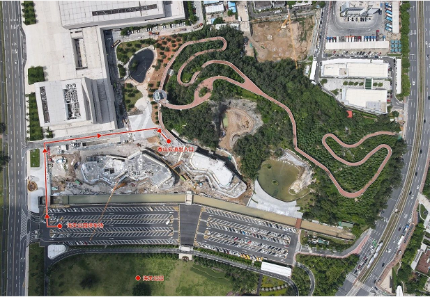 市民游客可從地面入口(珠海規(guī)劃展覽館北側(cè))徒步登上棧道,信步于山海之間,在呼吸“健康”的同時,將海天公園、日月貝、雞公山瀑布等城市美景盡收眼底,達(dá)到觀水觀城、通山達(dá)海、步移景異的景觀效果。