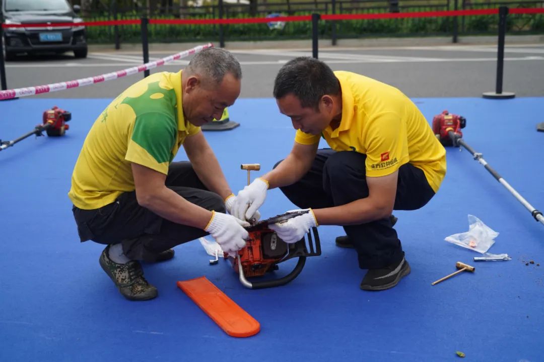 賽場(chǎng)另一邊,綠化組的參賽選手們對(duì)黃金榕巧妙構(gòu)思,修剪出一個(gè)個(gè)頗具觀賞價(jià)值的植物造型。在“器械拆裝”比拼中,選手們根據(jù)器械特點(diǎn),熟練地完成了長(zhǎng)、短油鋸拆裝,現(xiàn)場(chǎng)氣氛緊張而熱烈。