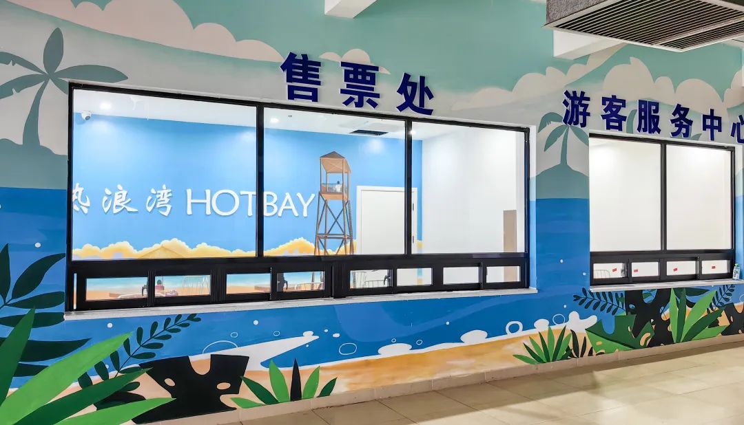 海洋風(fēng)景主題墻繪的游客服務(wù)中心,配有冷熱水沖涼房、自助售票區(qū)域和寄存物品區(qū)域,并對(duì)周邊區(qū)域景觀進(jìn)一步提升,打造出獨(dú)具特色的濱海特色城市園林景觀。