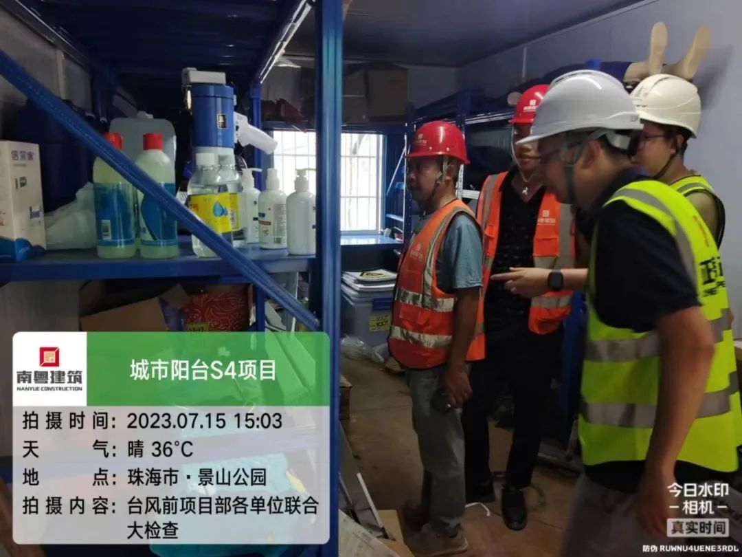 南粵建筑公司啟動應(yīng)急預(yù)案,對起重機械、腳手架、基坑邊坡、臨時用電、圍墻圍擋、低洼地區(qū)、排水設(shè)施等進行詳細檢查,切實做到防范在前;實行24小時值守,確保信息通暢,隨時應(yīng)對突發(fā)應(yīng)急情況。