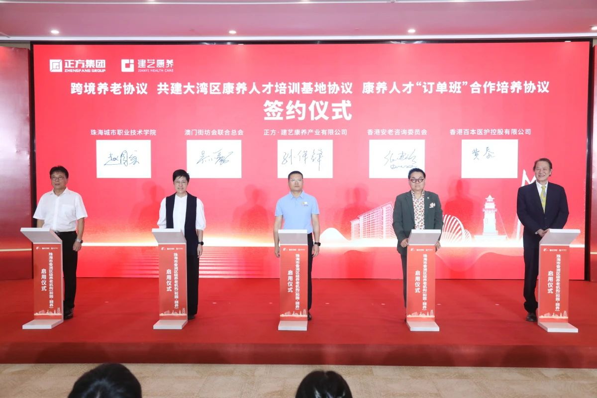 啟用儀式現(xiàn)場,項(xiàng)目運(yùn)營管理主體正方?建藝康養(yǎng)產(chǎn)業(yè)有限公司分別與香港安老咨詢委員會、澳門街坊會聯(lián)合總會簽訂跨境養(yǎng)老合作協(xié)議,與香港百本醫(yī)護(hù)控股有限公司簽訂跨境養(yǎng)老及共建大灣區(qū)康養(yǎng)人才培訓(xùn)基地協(xié)議,與珠海城市職業(yè)技術(shù)學(xué)院簽訂康養(yǎng)人才“訂單班”合作培養(yǎng)協(xié)議。香洲區(qū)民政局局長趙為敏發(fā)布了《珠海市香洲區(qū)“和園?頤養(yǎng)”項(xiàng)目跨境養(yǎng)老“醫(yī)療儲備金”試點(diǎn)工作方案》,“和園?頤養(yǎng)”院長、珠海市香洲區(qū)銀發(fā)經(jīng)濟(jì)產(chǎn)業(yè)協(xié)會會長單位代表孫保鋒發(fā)布了“珠海市香洲區(qū)級養(yǎng)老機(jī)構(gòu)(和園?頤養(yǎng))銀發(fā)經(jīng)濟(jì)應(yīng)用場景”。