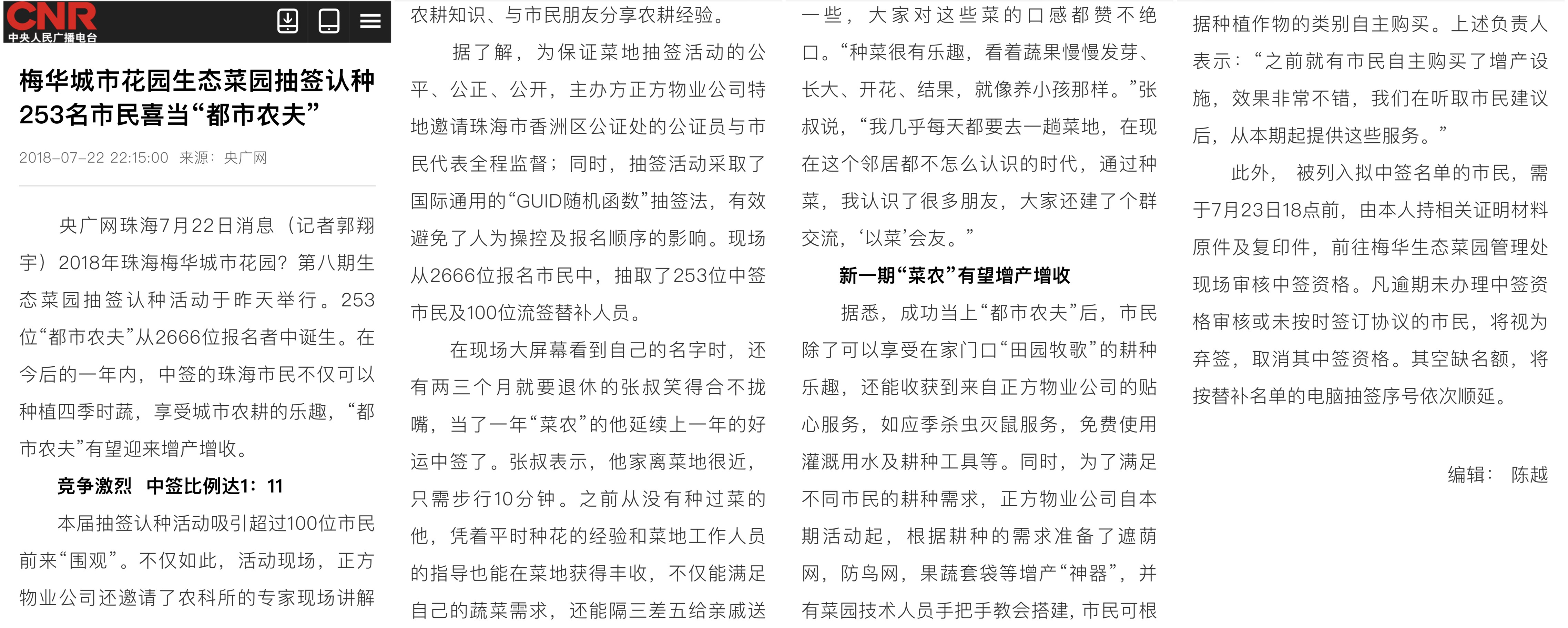 2018年珠海梅華城市花園?第八期生態(tài)菜園抽簽認種活動于昨天舉行。253位“都市農(nóng)夫”從2666位報名者中誕生。在今后的一年內(nèi),中簽的珠海市民不僅可以種植四季時蔬,享受城市農(nóng)耕的樂趣,“都市農(nóng)夫”有望迎來增產(chǎn)增收。