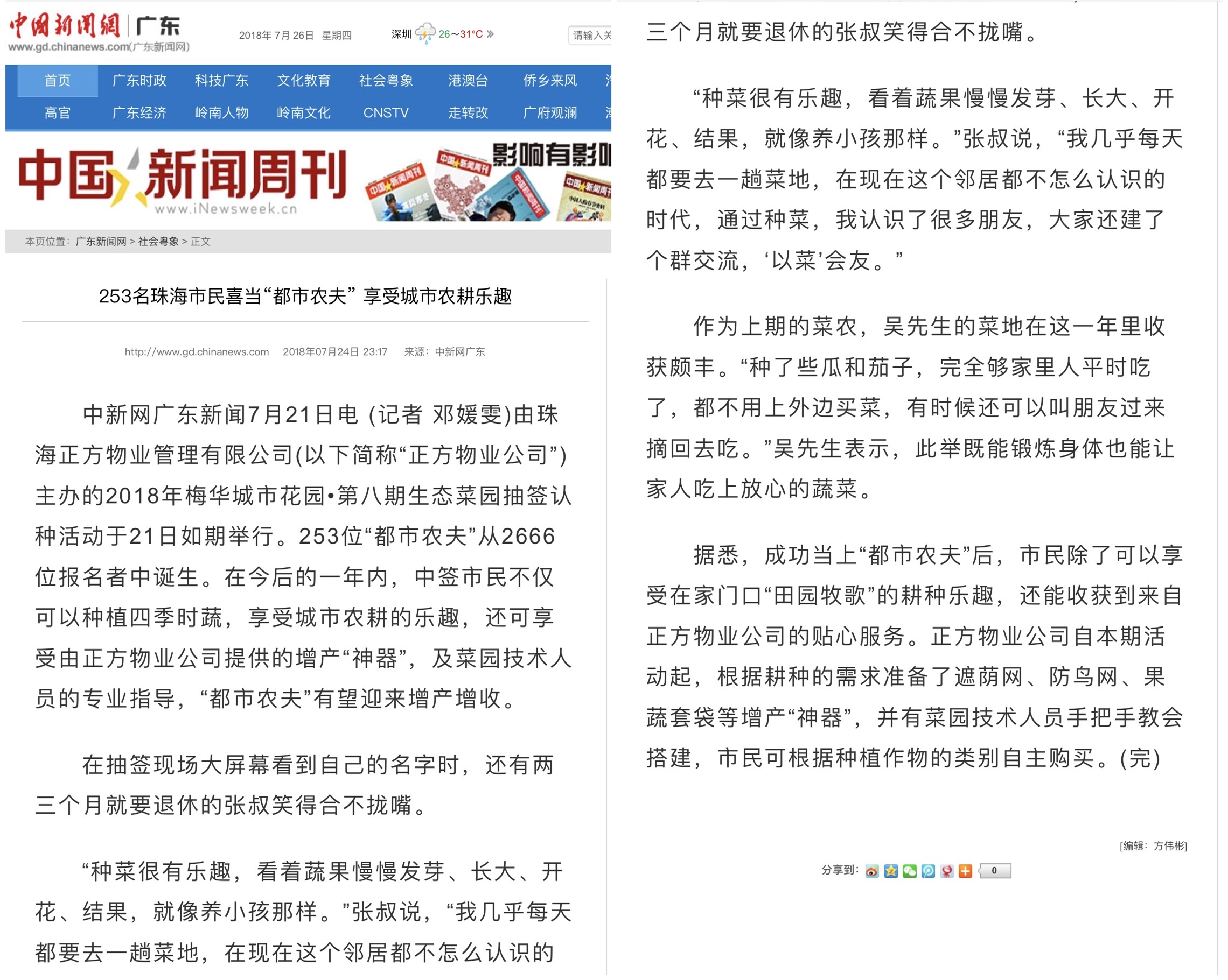 據(jù)悉,成功當上“都市農(nóng)夫”后,市民除了可以享受在家門口“田園牧歌”的耕種樂趣,還能收獲到來自正方物業(yè)公司的貼心服務。正方物業(yè)公司自本期活動起,根據(jù)耕種的需求準備了遮蔭網(wǎng)、防鳥網(wǎng)、果蔬套袋等增產(chǎn)“神器”,并有菜園技術(shù)人員手把手教會搭建,市民可根據(jù)種植作物的類別自主購買。