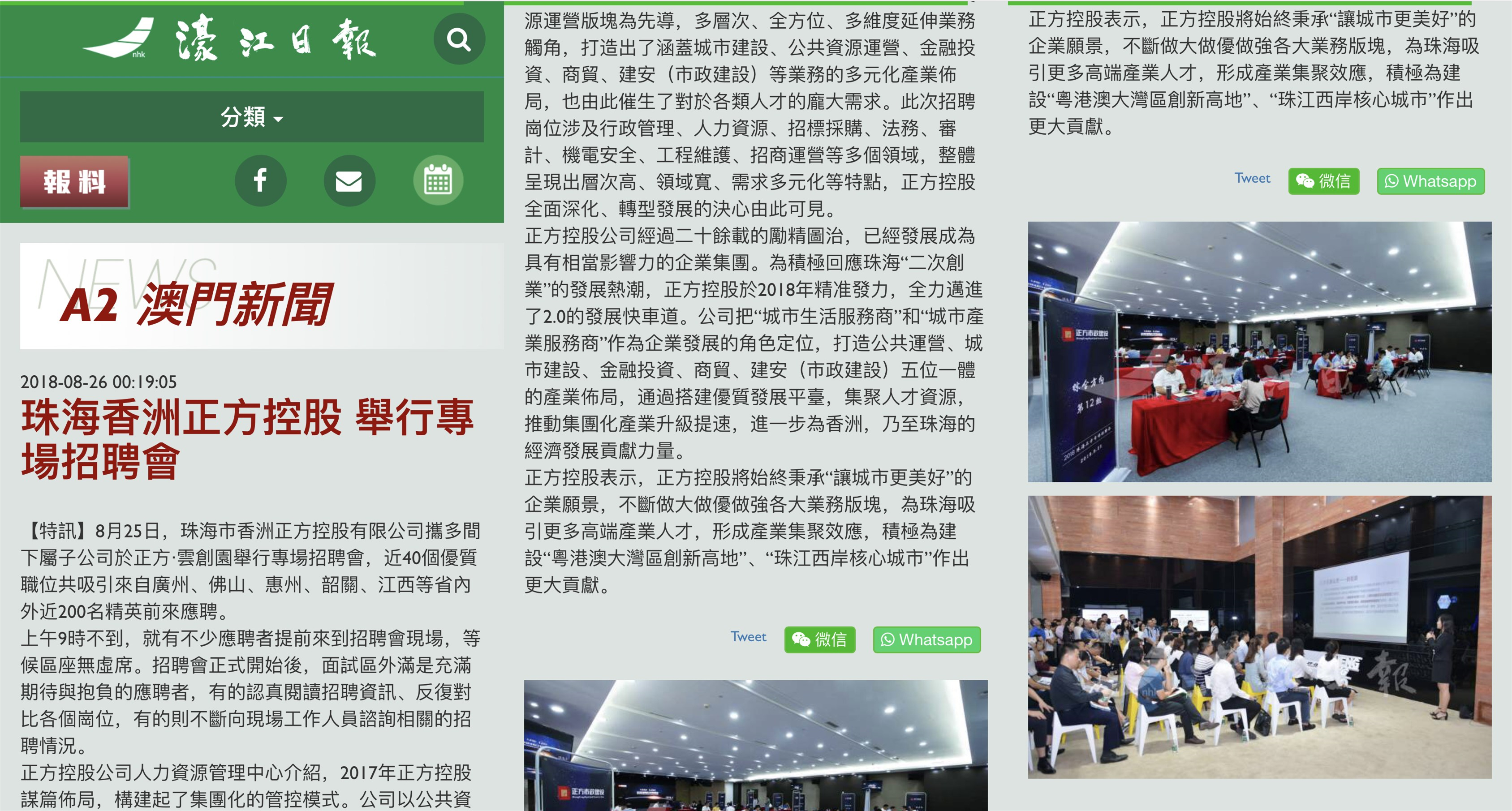 【特訊】8月25日,珠海市香洲正方控股有限公司攜多間下屬子公司于正方?云創(chuàng)園舉行專場(chǎng)招聘會(huì),近40個(gè)優(yōu)質(zhì)職位共吸引來自廣州、佛山、惠州、韶關(guān)、江西等省內(nèi)外近200名精英前來應(yīng)聘。