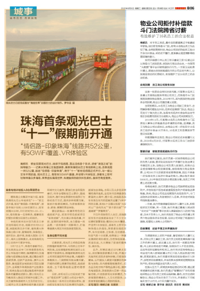 乘坐雙層觀光巴士,徜徉于情侶路,直達(dá)沿線各個景點(diǎn),感受“浪漫之城”的獨(dú)特魅力……記者從珠海公交集團(tuán)獲悉,首條珠海觀光巴士專線即將上線。該條線路一共52公里,起名“情侶路-印象珠海”,將于“十一”前在情侶路正式開行。與一般公交車不同的是,觀光巴士上,有整車5GWiFi覆蓋,并設(shè)有VR體驗區(qū),游客車上即可玩轉(zhuǎn)珠海眾多海島,探索虛擬海底世界;車廂提供自助飲料售賣機(jī),提供充電寶服務(wù)。