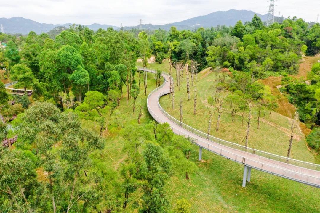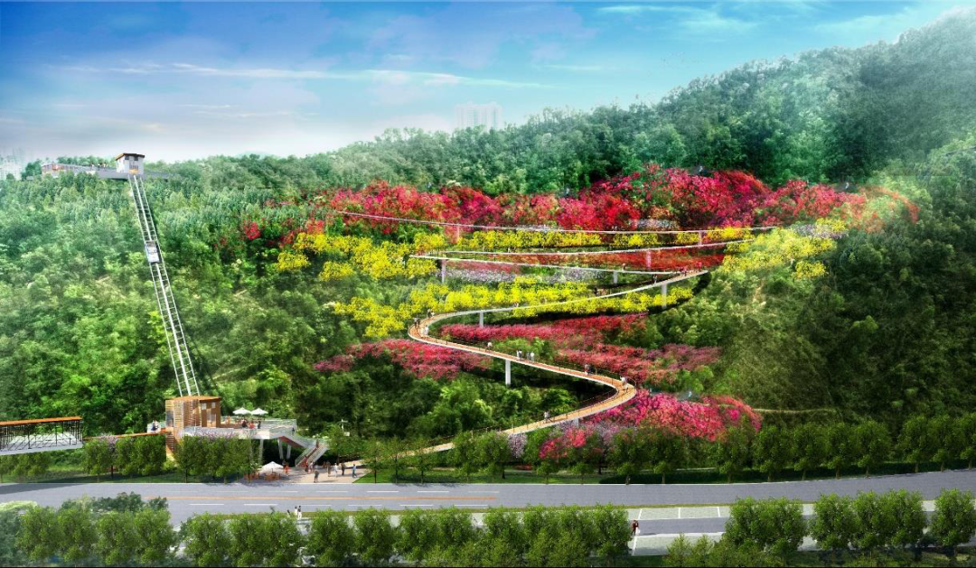 板樟山山地步道包括空中步道、森林步道、景觀橋、山頂驛站、無障礙垂直交通系統(tǒng)設(shè)施等子項(xiàng)及配套的景觀照明、安監(jiān)系統(tǒng)、標(biāo)識系統(tǒng)、休憩設(shè)施、綠化修復(fù)等。