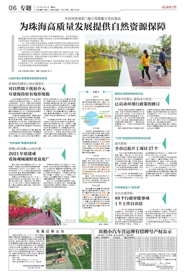 2019年1月,珠海市自然資源局正式掛牌成立。機(jī)構(gòu)改革后,充分發(fā)揮國土、規(guī)劃、海洋、林業(yè)“四位一體”優(yōu)勢,穩(wěn)步推進(jìn)自然資源審批改革,優(yōu)化審批政策,前置審批服務(wù),多措并舉,降低企業(yè)成本。去年10月,珠海在全省率先實(shí)施選址和預(yù)審、用地規(guī)劃許可和用地批準(zhǔn)合并政策,徹底落實(shí)“多審合一、多證合一”。