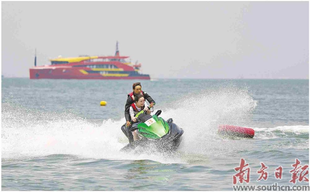 據(jù)珠海市文化廣電旅游體育局相關(guān)負責(zé)人介紹,珠海市正在積極包裝打造網(wǎng)紅打卡點,目前情侶路浪漫風(fēng)情海岸帶在沙灘沿線新增多項體育娛樂項目。其中,熱浪灣市民海上項目體驗中心目前已開展皮劃艇、摩托艇、水上飛人等13個濱海娛樂親水項目;鳳凰灣沙灘開設(shè)動力滑翔傘項目,游客乘坐動力滑翔傘由沙灘起飛,空中可俯瞰珠澳大橋、日月貝、情侶路沿線海天景色,成為年輕人尋求刺激和親水娛樂的打卡點。