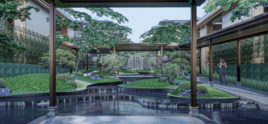 而社區(qū)內部,則采用正方首創(chuàng)、珠海唯一的新嶺南風格園林,參考吸取嶺南四大名園精華,打造“兩軸三庭,五進六園”景觀布局。