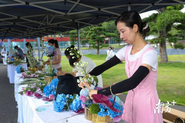 據(jù)了解,香洲區(qū)首屆園藝景觀大賽包含了“綠美街巷”“街頭景觀”“理想花園”“花植風(fēng)采”“藝術(shù)插花”等比賽。頒獎(jiǎng)前,大賽舉行了最后一場比拼——“藝術(shù)插花”比賽。決賽選手根據(jù)現(xiàn)場提供的花卉素材,開始他們的藝術(shù)創(chuàng)作。評審反復(fù)觀察,為選手的作品打分。來賓們也紛紛前來觀看,交流插花藝術(shù)經(jīng)驗(yàn)。