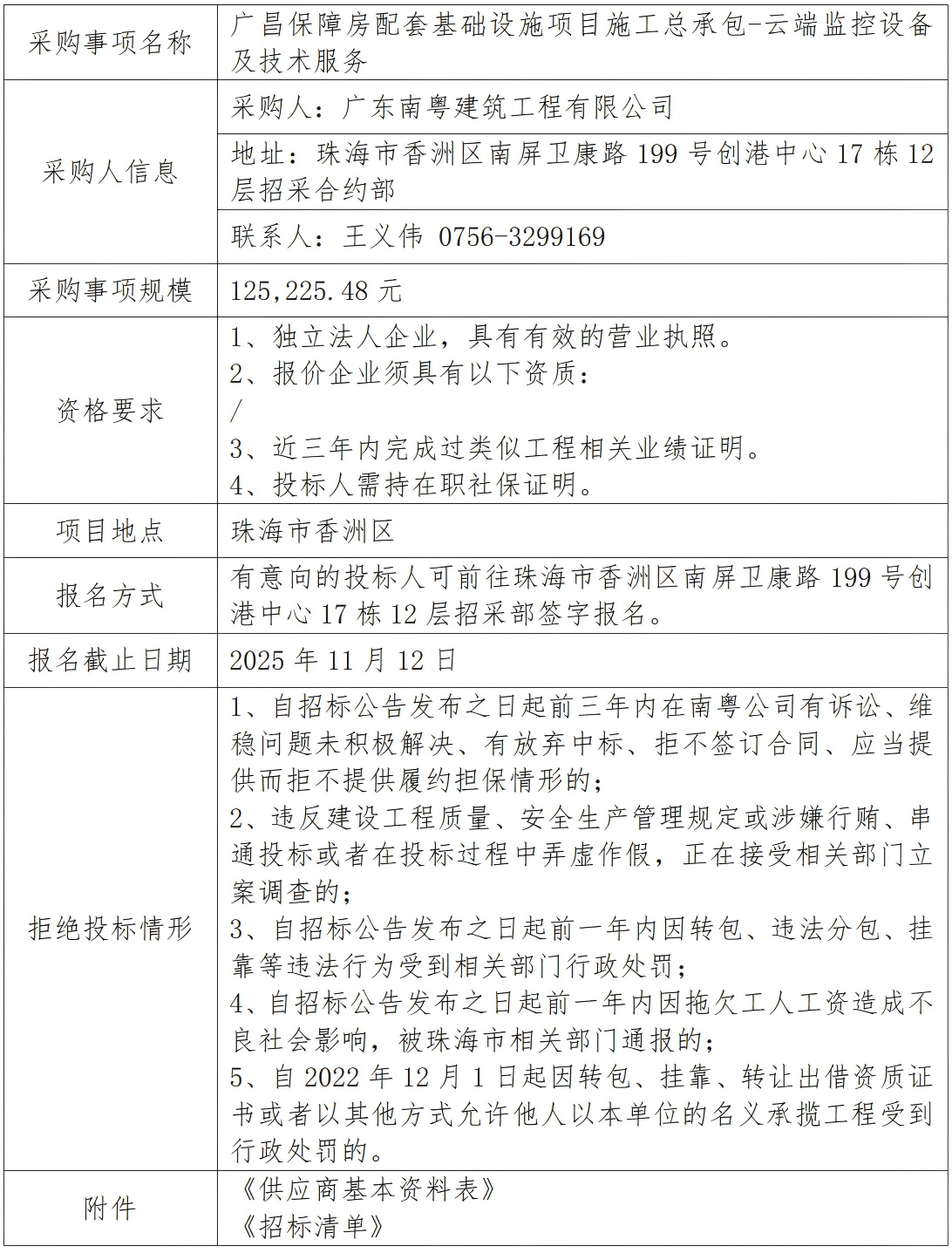 廣昌保障房配套基礎(chǔ)設(shè)施項(xiàng)目施工總承包-云端監(jiān)控設(shè)備及技術(shù)服務(wù) 專(zhuān)欄:工程招標(biāo) 發(fā)布日期: 2025-11-10 作者:招采管理中心 附件:供應(yīng)商基本資料表 附件:廣昌保障房配套基礎(chǔ)設(shè)施項(xiàng)目施工總承包-云端監(jiān)控設(shè)備及技術(shù)服務(wù)招標(biāo)空白清單 返回列表 上一篇:洪灣舊村更新項(xiàng)目周邊環(huán)山路等市政道路工程-波形護(hù)欄材料采購(gòu) 下一篇:廣昌保障房配套基礎(chǔ)設(shè)施項(xiàng)目施工總承包-實(shí)名制系統(tǒng)考勤機(jī)升級(jí)、環(huán)境監(jiān)測(cè)系統(tǒng)、視頻監(jiān)控