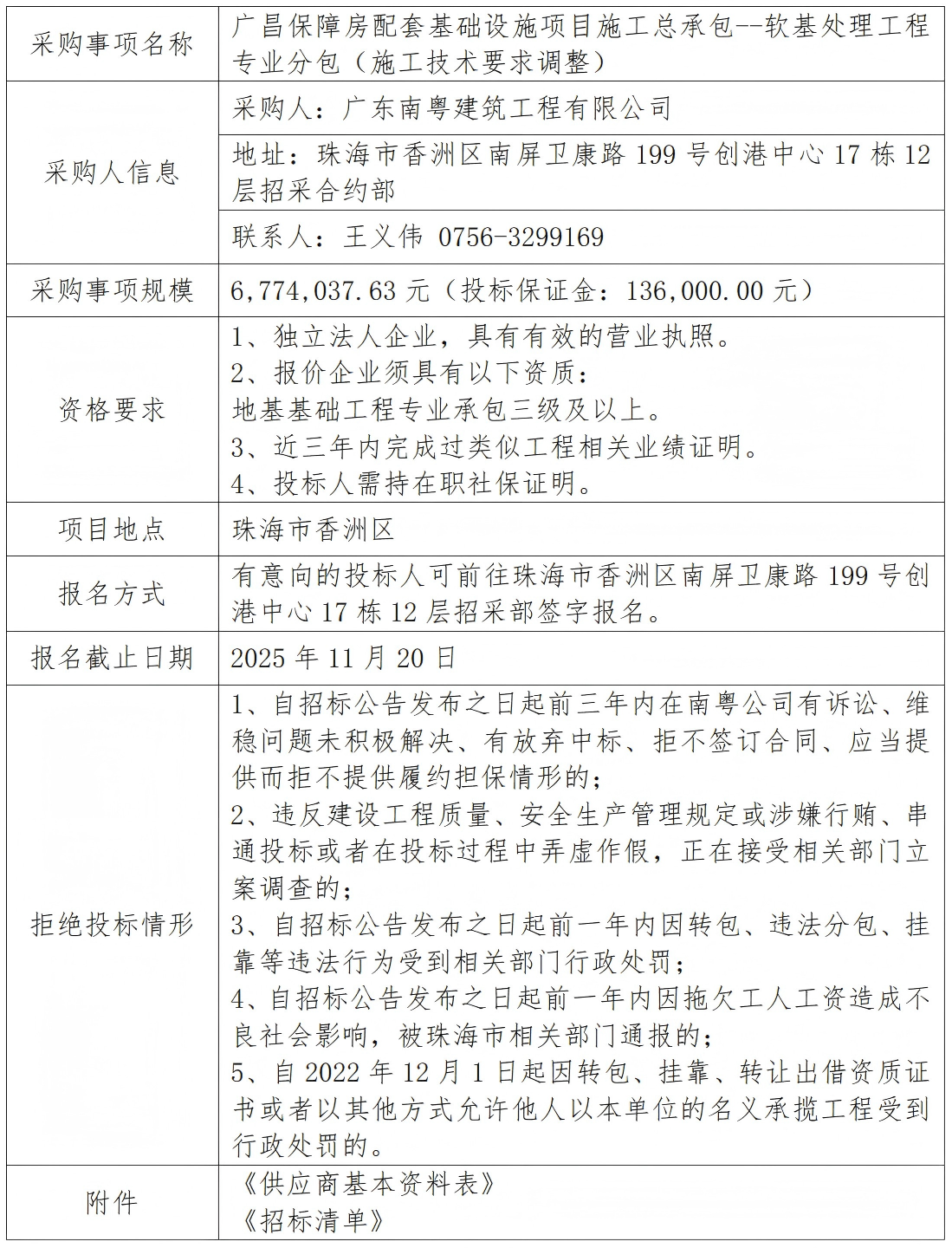 廣昌保障房配套基礎(chǔ)設(shè)施項(xiàng)目施工總承包--軟基處理工程專業(yè)分包(施工技術(shù)要求調(diào)整) 專欄:工程招標(biāo) 發(fā)布日期: 2025-11-18 作者:招采管理中心 附件:供應(yīng)商基本資料表 附件:廣昌保障房配套基礎(chǔ)設(shè)施項(xiàng)目施工總承包--軟基處理工程專業(yè)分包招標(biāo)清單 返回列表 上一篇:廣昌保障房配套基礎(chǔ)設(shè)施項(xiàng)目施工總承包-鋼板樁支護(hù)工程專業(yè)分包 下一篇:洪灣舊村更新項(xiàng)目周邊環(huán)山路等市政道路工程-波形護(hù)欄材料采購(gòu)