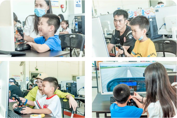 隨后,進(jìn)入到了航天知識(shí)分享和模擬器實(shí)踐操作環(huán)節(jié),資深的專(zhuān)業(yè)航空講師不僅給孩子們分享航空知識(shí),還介紹了模擬器的綜合儀表,導(dǎo)航儀表、油門(mén)、操縱桿等結(jié)構(gòu)及其操作方式,小朋友們一邊認(rèn)真地學(xué)習(xí)基本原理,一邊按照航空講師的步驟操作,完全沉浸在飛行模擬器、航模模擬器的現(xiàn)場(chǎng)實(shí)操中。“我也想開(kāi)飛機(jī)在天上飛!”一個(gè)孩子興奮地對(duì)媽媽說(shuō)道。